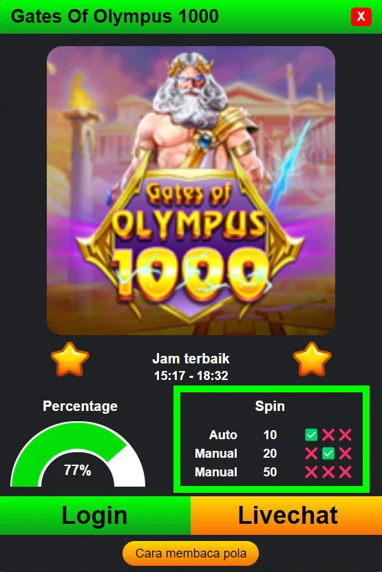 Pola ini adalah pola rekomendasi yang disediakan Gunung303 untuk member setia Gunung303 yang bingung saat hendak bermain. Namun, untuk kemenangan terbesar kembali kepada skill & keberuntungan masing-masing player. Player Gunung303 juga bisa menggunakan pola bermain sendiri jika mempunyai pola yang dirasa lebih baik dari pola yang disediakan.